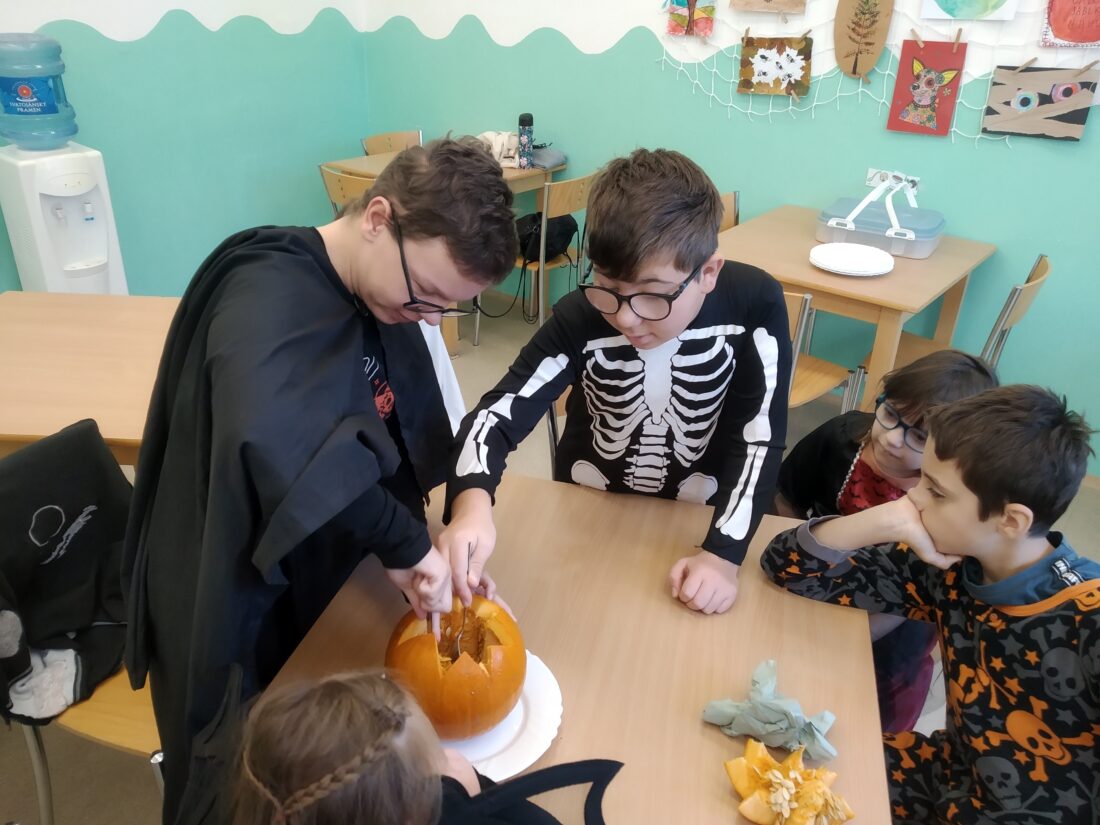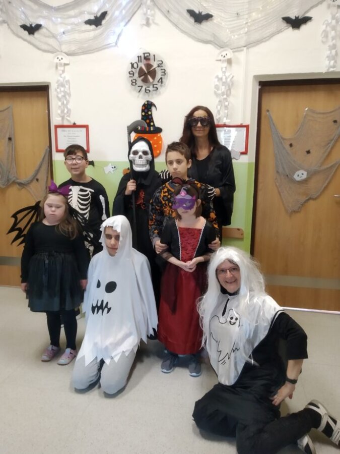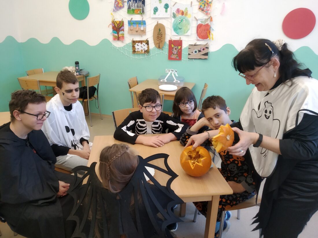 👻🕸️ Na naší škole jsme si užili skvělý Halloween plný zábavy, smíchu, převleků a strašidelné atmosféry. Žáci i učitelé přišli v krásných i strašidelných kostýmech – nechyběli čarodějnice, duchové ani kostlivci. Společně jsme zdobili školu, vyráběli strašidelné dekorace, plnili různé tematické úkoly. Na závěr dne jsme si užili malou diskotéku a sladkou odměnu. Byl to den plný smíchu, odvahy a radosti! 👻🕷️