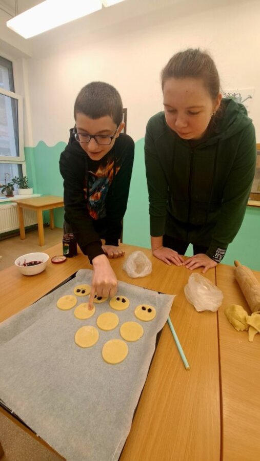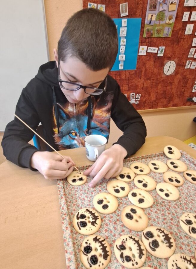 V naší třídě I. C jsme si 23. října 2025 užili sladké a tvořivé dopoledne – pekli jsme cukroví ve tvaru strašidelných hlav! Každý kousek jsme ozdobili marmeládou a čokoládou, aby vypadal co nejděsivěji. Tím jsme si připravili originální svačinku na náš blížící se halloweenský rej masek.