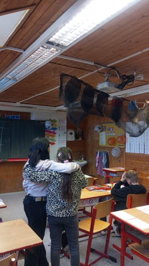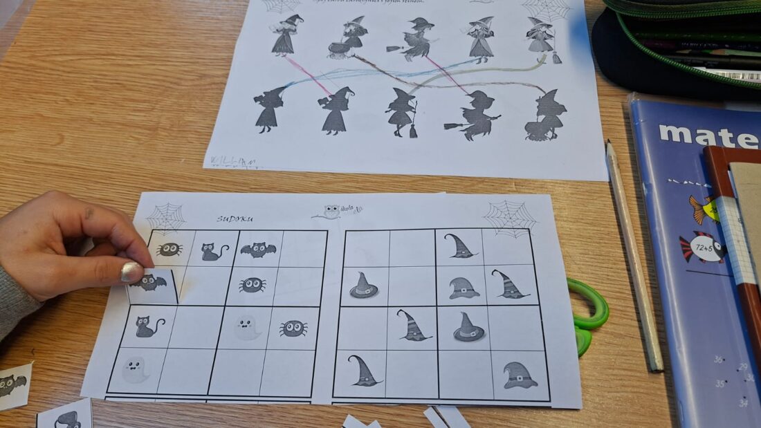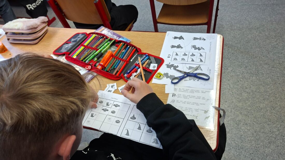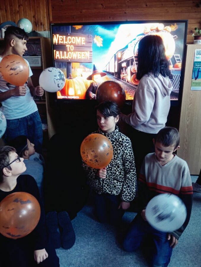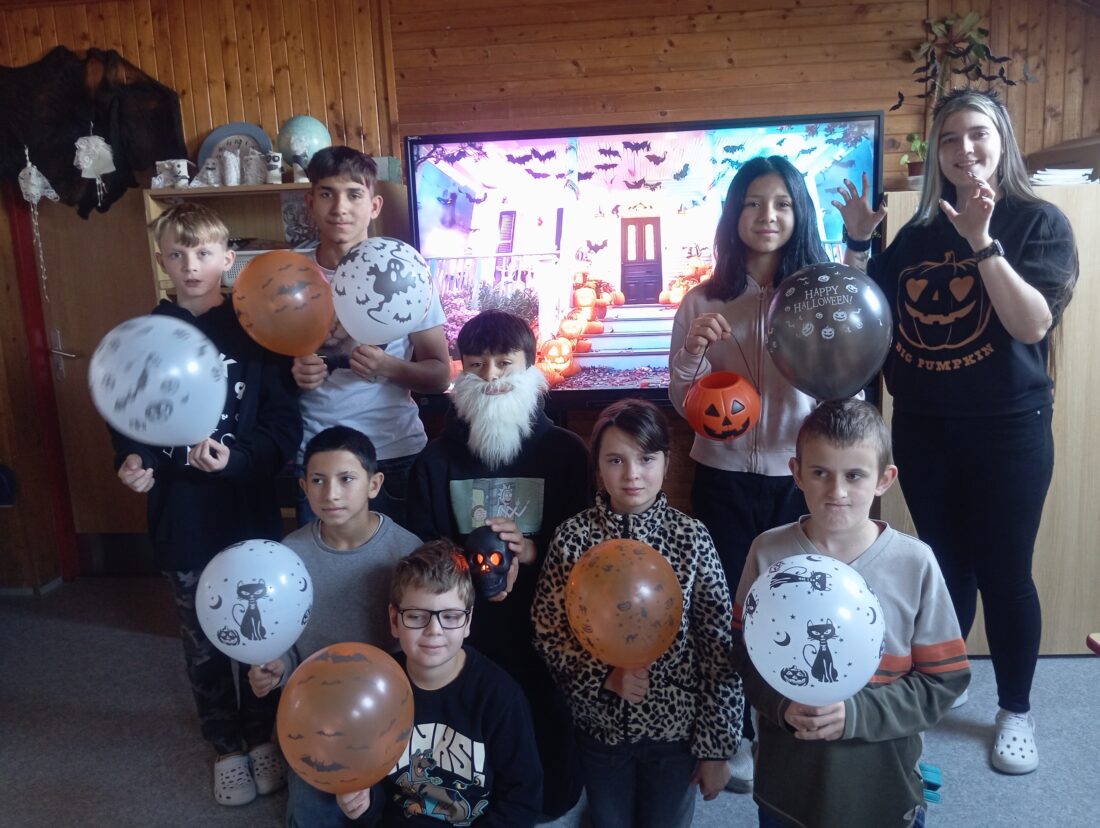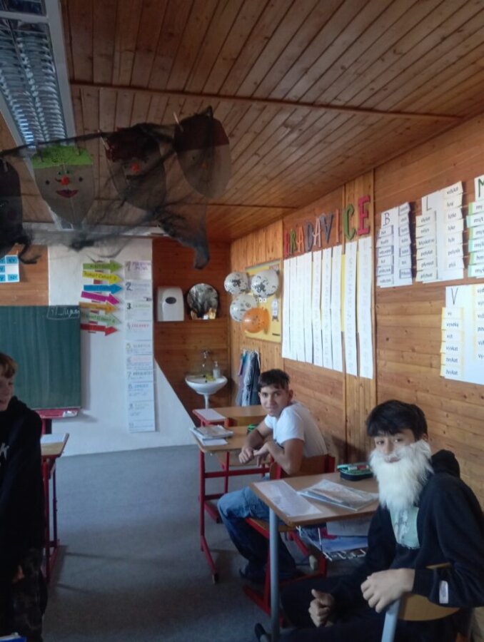 👻 V pátek se žáci 4., 5. a 7. třídy ponořili do tajemného světa Halloweenu. Učili se, jak správně strašit – ať už pomocí masek, nebo strašidelných příběhů.