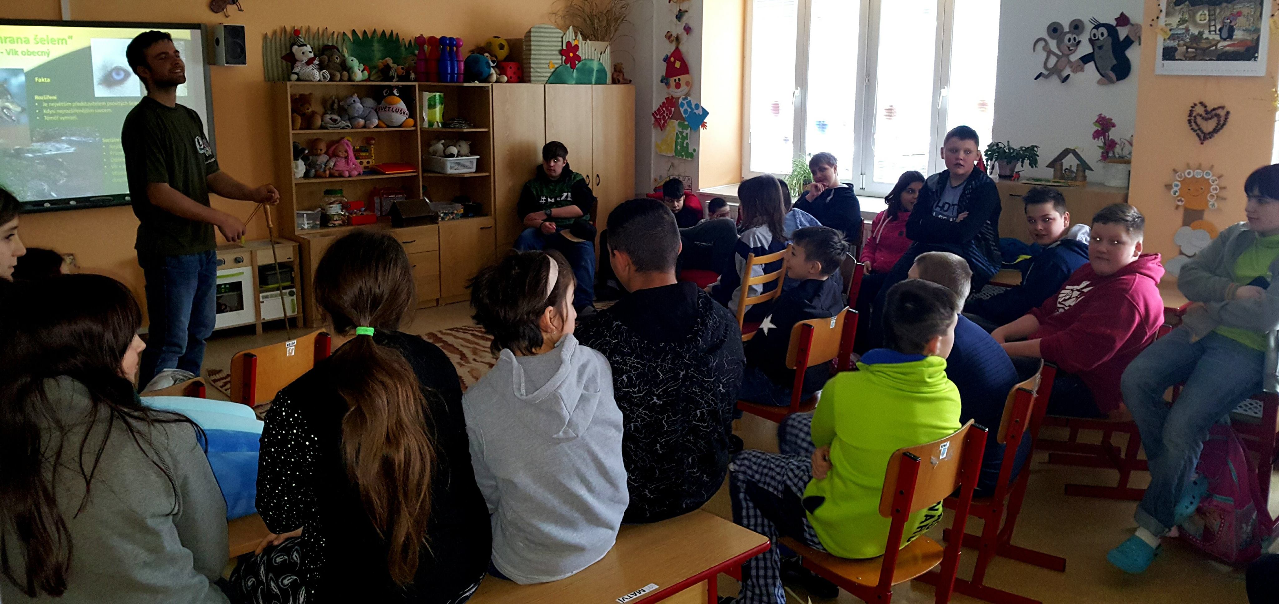 Téma besedy „Ochrana velkých šelem“. Program byl zaměřen na vlka obecného, medvěda hnědého a ryse ostrovida.