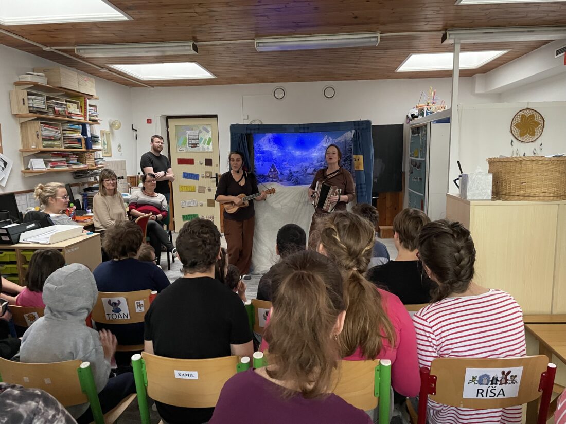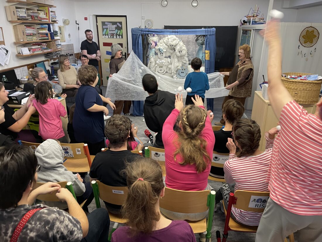 Do naší školy zavítalo divadlo Jójo s veselou zimní pohádkou „O sněhovém nadělení“. Děti si představení užily od začátku do konce – nechyběl humor, písničky ani kouzelná zimní atmosféra. 🙂