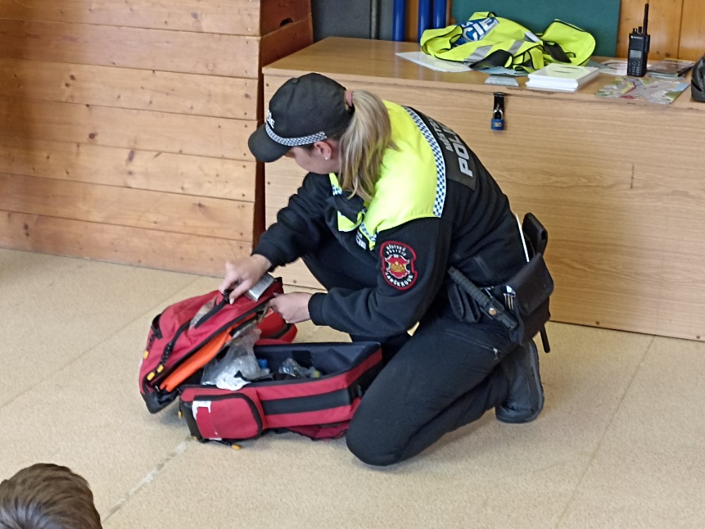 Nastalo nám jaro, tak naši školu navštívili příslušníci městské policie, abychom si zopakovali zásady bezpečného pohybu na silnici. Zopakovali jsme si, po které straně chodíme, jak správně a bezpečně máme jezdit na kole. Také jsme si řekli, co takové kolo musí mít, aby bylo bezpečné. Na závěr jsme si vyzkoušeli zdravovědu. Všem se nám beseda líbila.