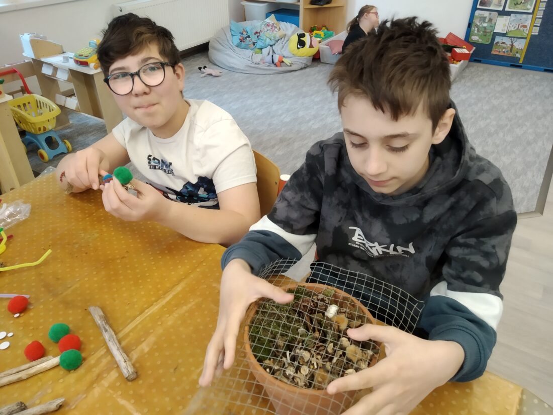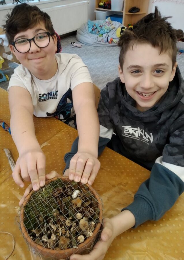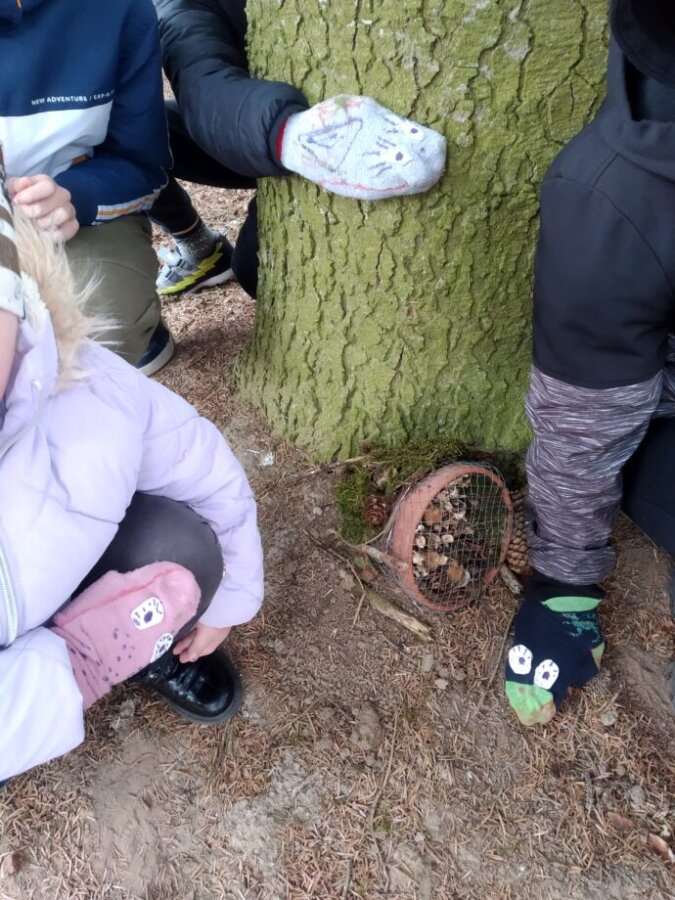 Ve znamení hesla „Kdo si hraje, nezlobí!“ jsme žákům nachystali různé tvořivé činnosti a hry v přírodě. Cestou jsme si nasbírali různé přírodniny, ze kterých jsme pak ve škole vyrobili interaktivní pomůcku pro žáky a zbytek využili ve výtvarné výchově. V rámci týdne Kampaň obyčejného hrdinství jsme s žáky v lese připravili Hmyzovník, který jsme pak dotvořili ve škole. Již zdobí naší školní zahradu a doufáme, že si co nejdříve najde své malé obyvatele. 😊