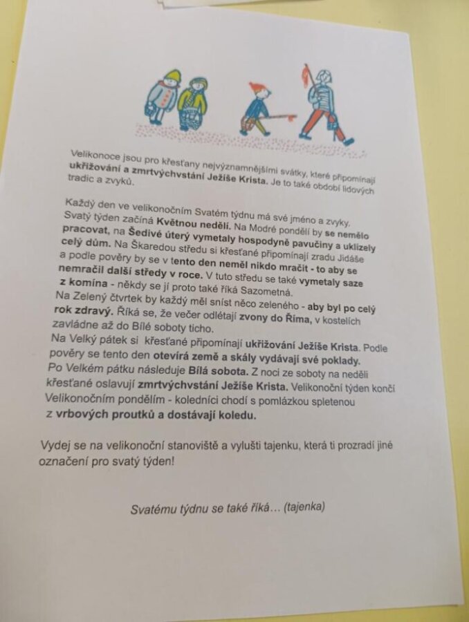 Máme za sebou nabitý březen plný barev, her a poznávání. Týden věnovaný vodě jsme zakončili naučně pohybovou stezkou a hravými bublinovými aktivitami. Ani příprava na Velikonoce nezůstala pozadu – tvořili jsme dekorace, povídali si o tradicích a vše završili napínavým hledáním pokladu podle mapy a bavili se u velikonočních soutěží. Dechovou hrou jsme si také vyzkoušeli, jak těžké to mají včeličky při sbírání pylu. Pokud nám přeje počasí využíváme všechny možnosti školní zahrady ke sportování, hraní na písku, malování křídami, foukání bublin a mnohé další. Těšíme na další krásné jarní dny v družině.