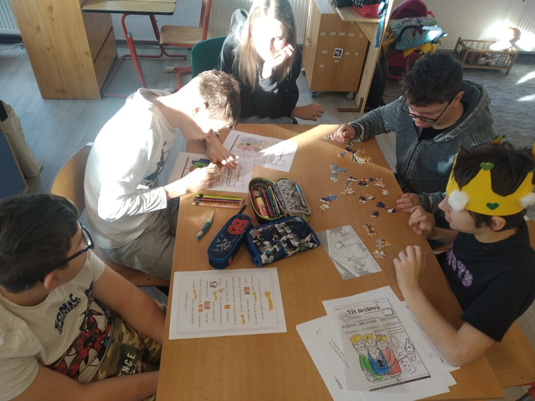 Svátek Tří Králů přinesl žákům i pedagogům ze IV.C hned několik „darů“. Prvním z nich byl návrat do naší nově rekonstruované třídy, na který jsme se již všichni těšili. Druhým „královským darem“ bylo parádní zimní počasí, které nešetřilo svými obvyklými rekvizitami. Při sněhových radovánkách občas ruce zábly, a tak jsme se rádi zahřáli u pečení bábovky. Že jsme nemysleli pouze na svá bříška dokazuje výprava ke krmelci v mrazivém, ale krásně prosluněném dni.