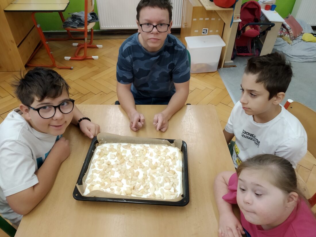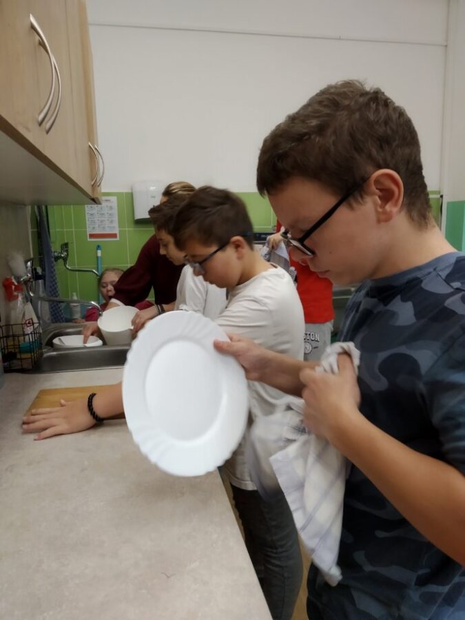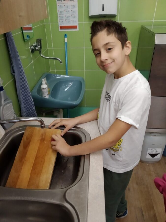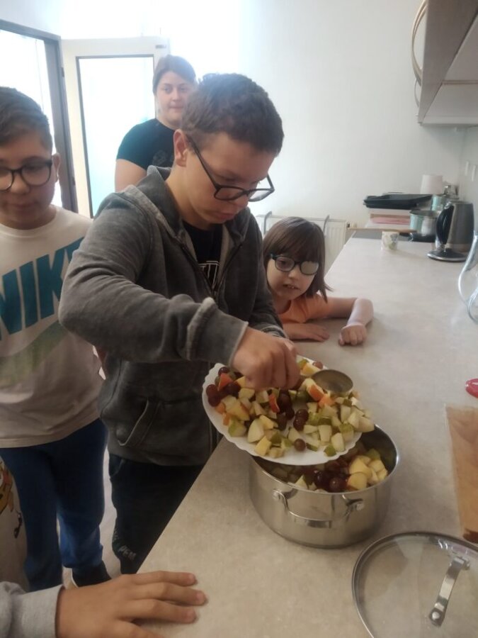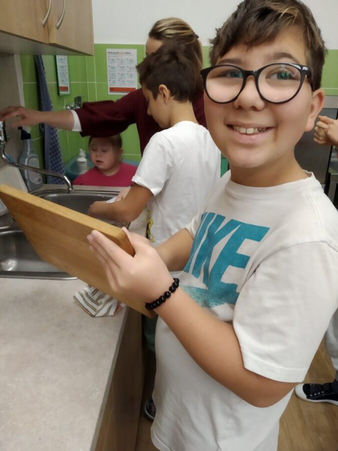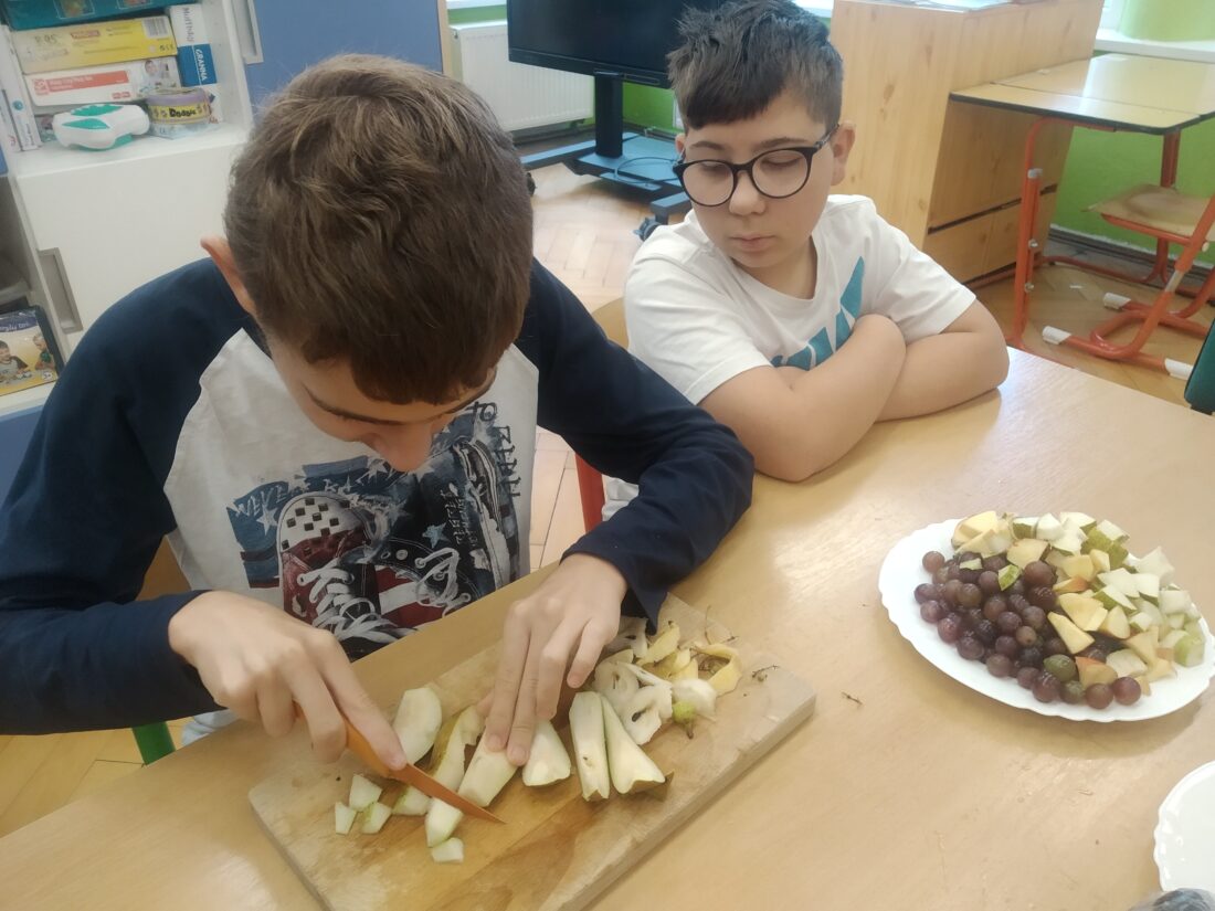 Podzim přináší bohatou sklizeň ovoce, zeleniny a plodů z přírody. Je radost z nich společně něco vytvořit. Naši malí kuchaři ze IV.C si během října vyzkoušeli hned dva recepty. Jedním bylo vaření Ovocného kompotu. Krájení ovoce na malé kousky dalo žákům docela zabrat, ale odměna byla sladká. Druhou výzvou bylo pečení Hruškového koláče, kde se ke krájení přidalo i loupání a míchání ingrediencí. Že se výsledky povedly, potvrdily jejich spokojená bříška 😊.