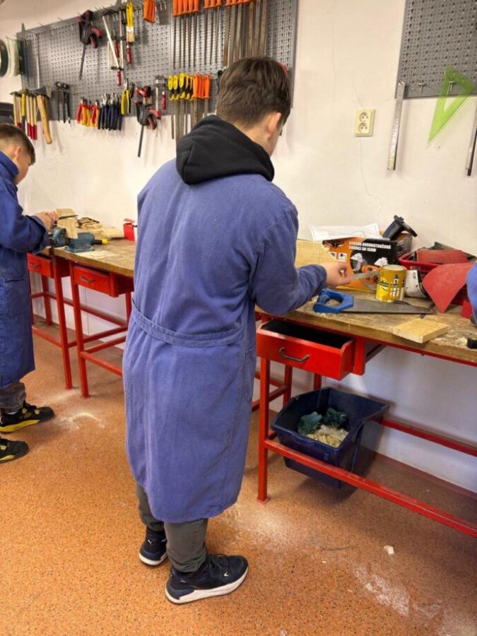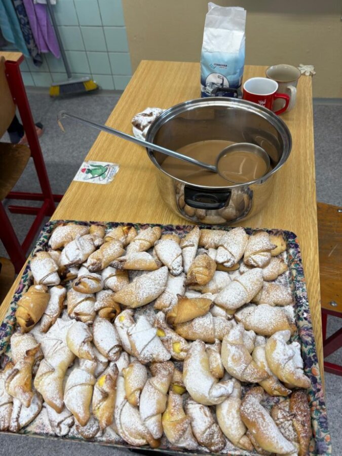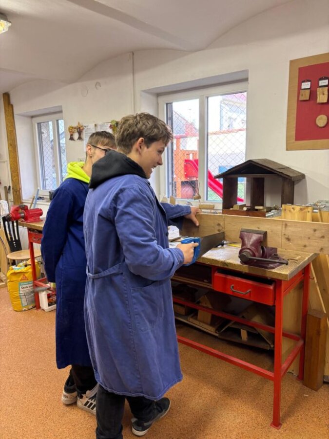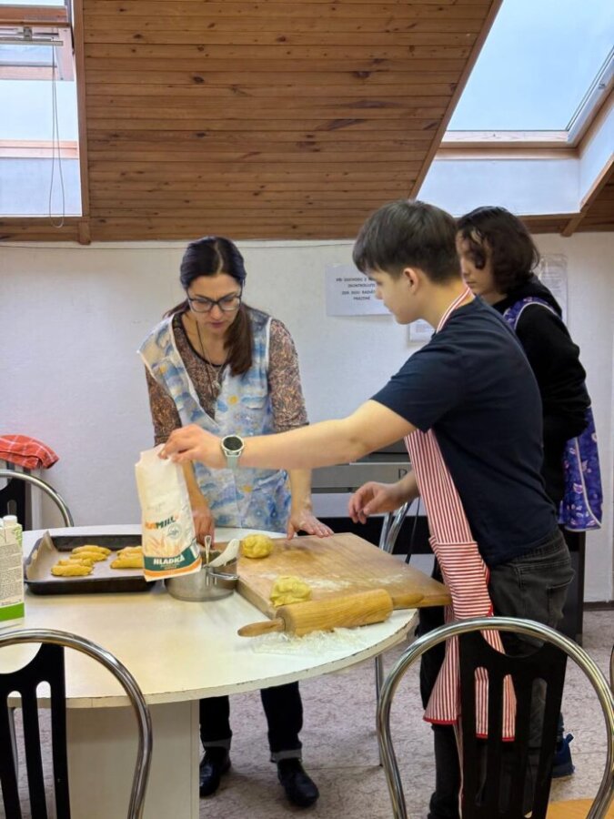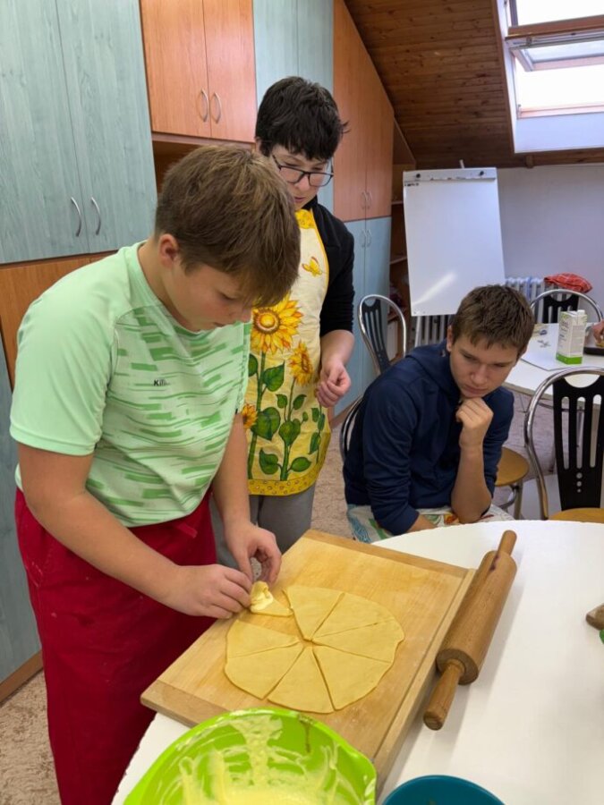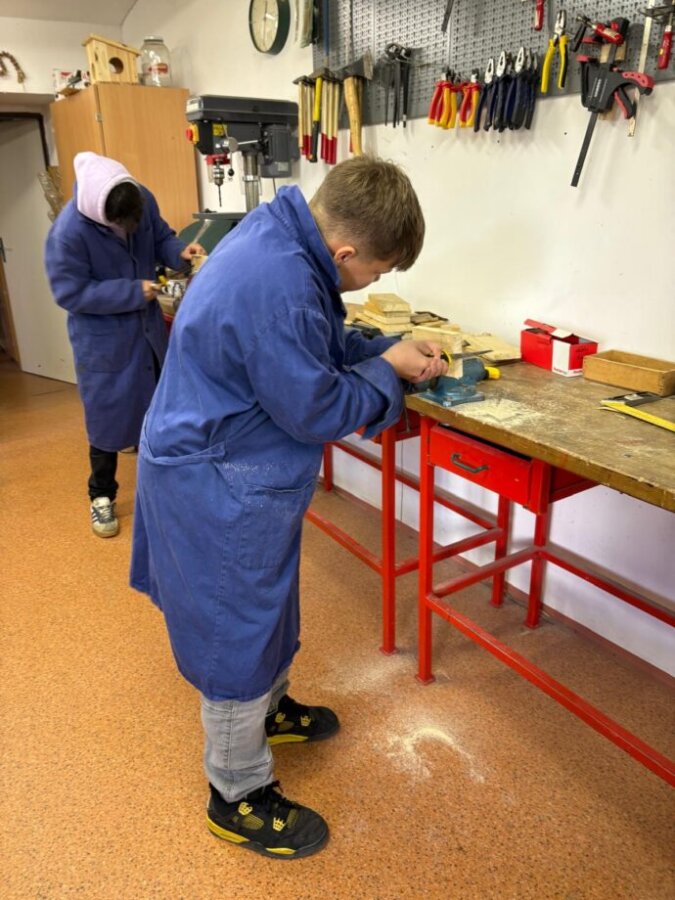 V rámci pracovních činností třída 7., 8., 9. LMP pekla svatomartinské rohlíčky a vánoční cukroví. Kluci v dílně vyráběli dřevěné domečky. A v keramické dílně celá třída vyráběla vánoční svícínky a skřítky.