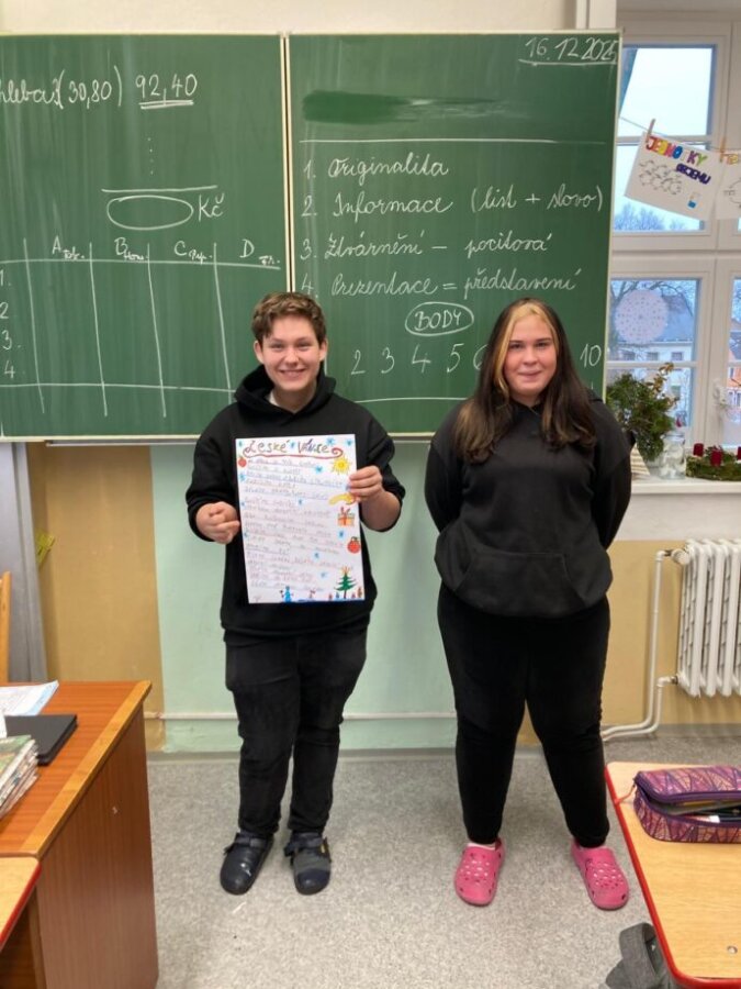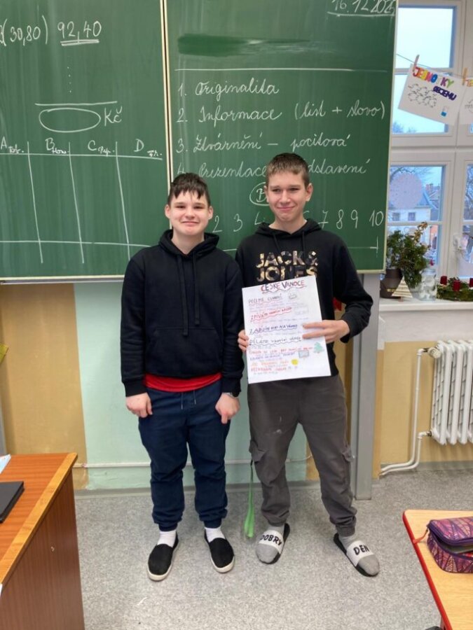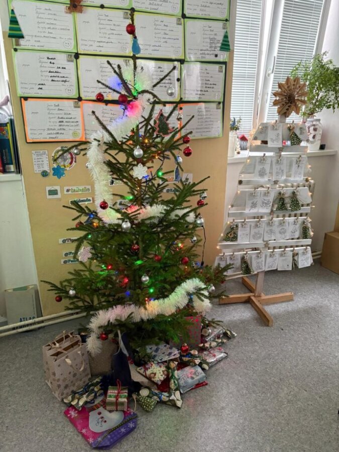 Třídu jsme si vyzdobili adventním kalendářem, ve kterém se na každý den skrývalo, co nás ten den čeká, ale také pranostiky. Během posledního týdne ve škole jsme navštívili kino, animovaný film Zootropolis 2, měl velký úspěch. Také jsme vyrazili na procházku s chlupatým kamarádem, kolem lanškrounských rybníků. Na Kypuši jsme nabrali síly na cestu zpět. Během zpáteční cesty jsme po lese roznesli dobroty pro lesní zvěř. Poslední školní den tohoto roku proběhla prezentace o Vánocích po celém světě. Dále jsme si vyrobili svícínky a konečně jsme mohli posedět, pochutnat na cukroví a rozdat si dárečky. A hlavně si popřát krásné Vánoce a štěstí v novém roce 2026.