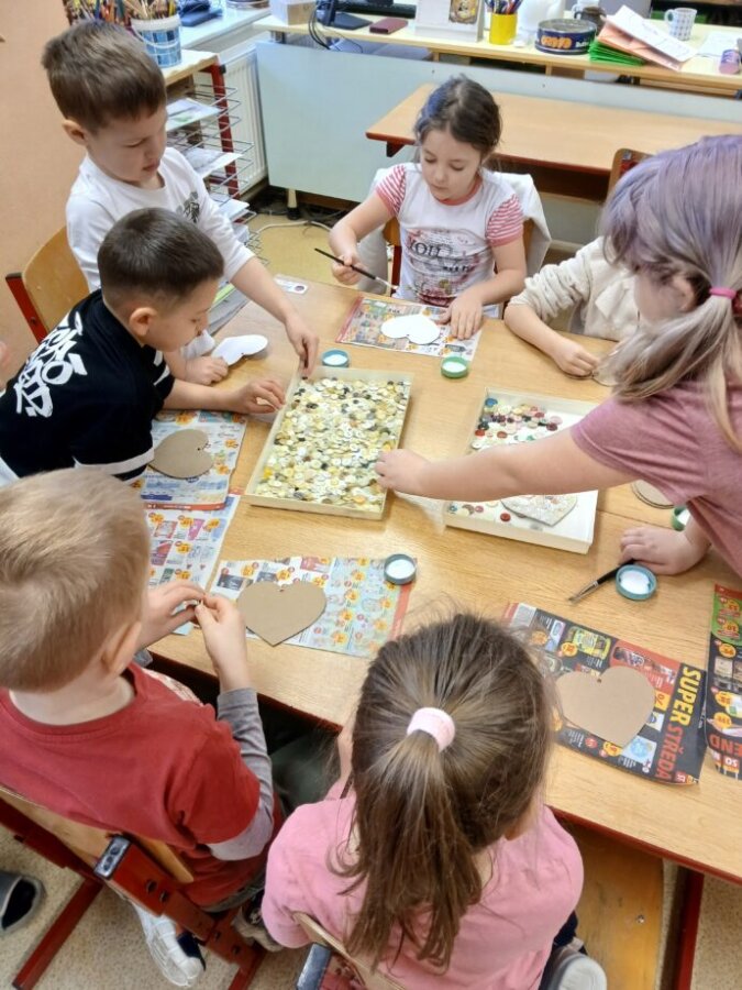 V naší třídě jsme si užili dny plné pohádek a tvoření. Děti, které zahrály pohádky, získaly diplom Malého pohádkáře. Společně jsme také vyráběli jarní dekorace, vytvořili jarní zahrádku a srdíčko z knoflíků.