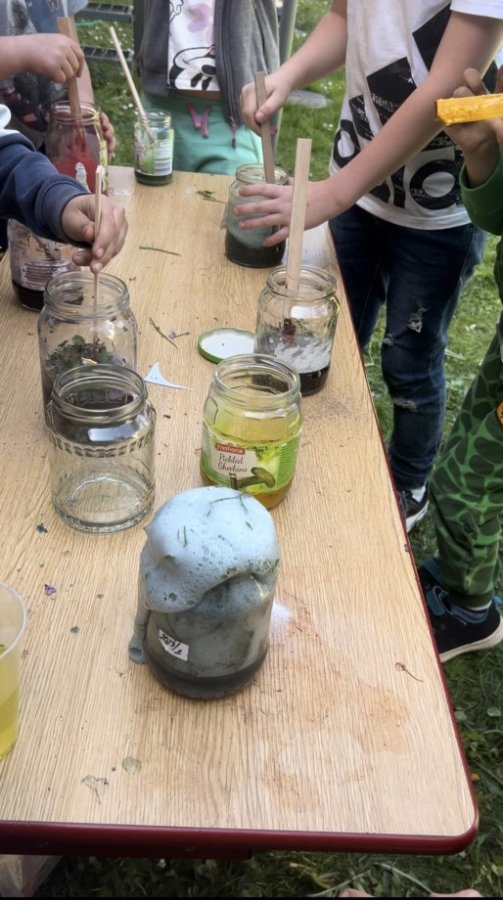 Ale nejen Žabí hlen s netopýry byl na programu. Vytvořili jsme i další čarodějnické lektvary, které nám, jako správným čarodějkám a čarodějům, vybublaly. 🫧 Zkoušely jsme například lektvar lásky, který měl moc přivolat štěstí do života🍀❤️ a také jsme se pokusili o lektvar neviditelnosti, který nás měl skrýt před očima ostatních.🔮😵💫