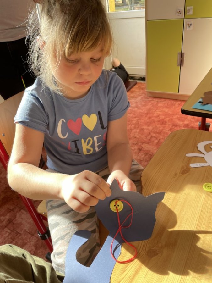 Vyrábění kočiček ve školní družině, aneb šijeme si zvesela, aby nuda nebyla 🙂