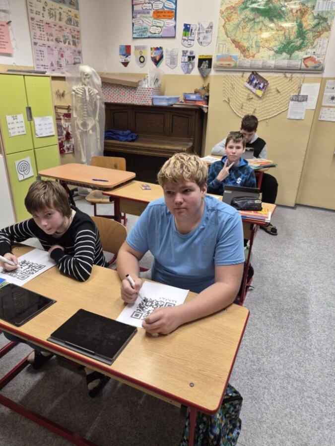 Žáci se pro dnešek stali členy elitního týmu a pustili se do luštění záhady. Naučili se pracovat s QR kódy, hlasovali v anketě a také počítali.